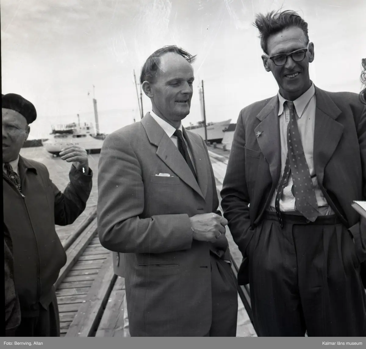 Byxelkroks hamn, eventuellt Bertil Sjöberg, Ragnar Persson och en okänd.