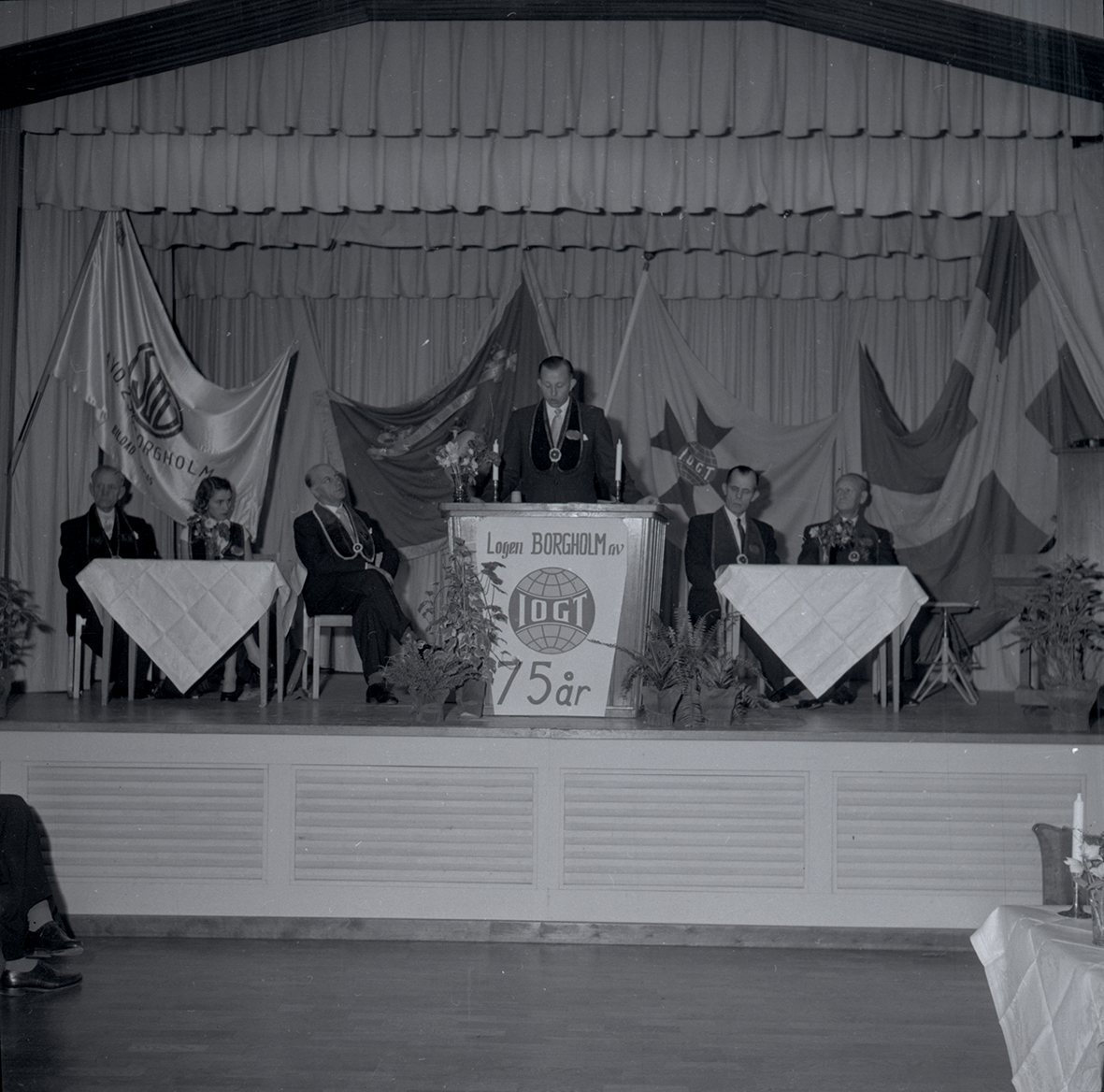 Invigning av lokalen. Man som håller tal. IOGT-logen 75 år den 16/11 -57.