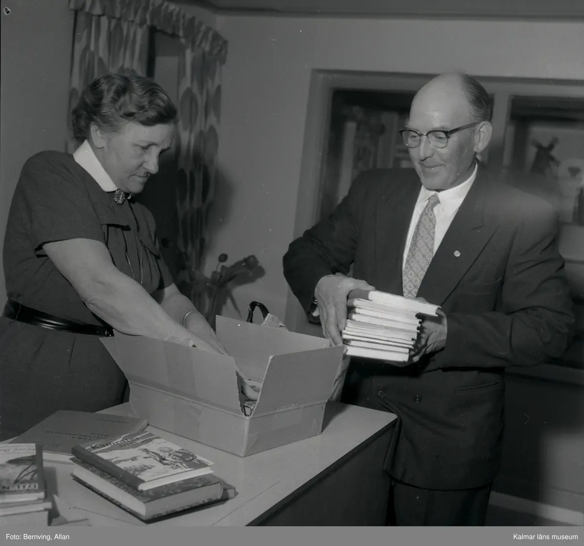 Gärdslösa kommungård (förut ålderdomshem) i biblioteket. Två personer hanterar böcker.