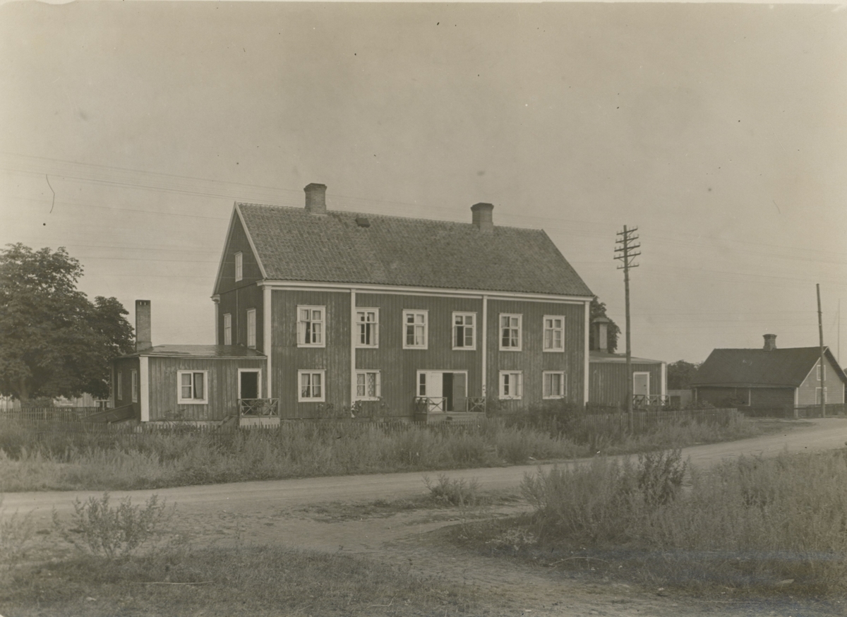 Påskallavik. Den äldre Callerströmska gården. Det äldsta huset på platsen. Här fanns målade inredningar förr. - Senare blev det arbetarbostäder. Huset är rödfärgat med vita lister och foder.