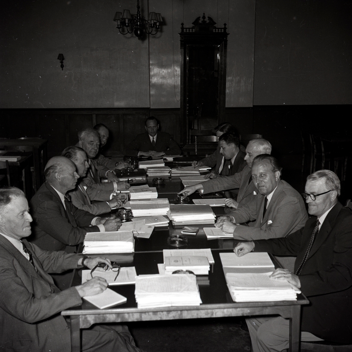 1953 års kommunikationsutredning i februari med ordförande Per Åsbrink.