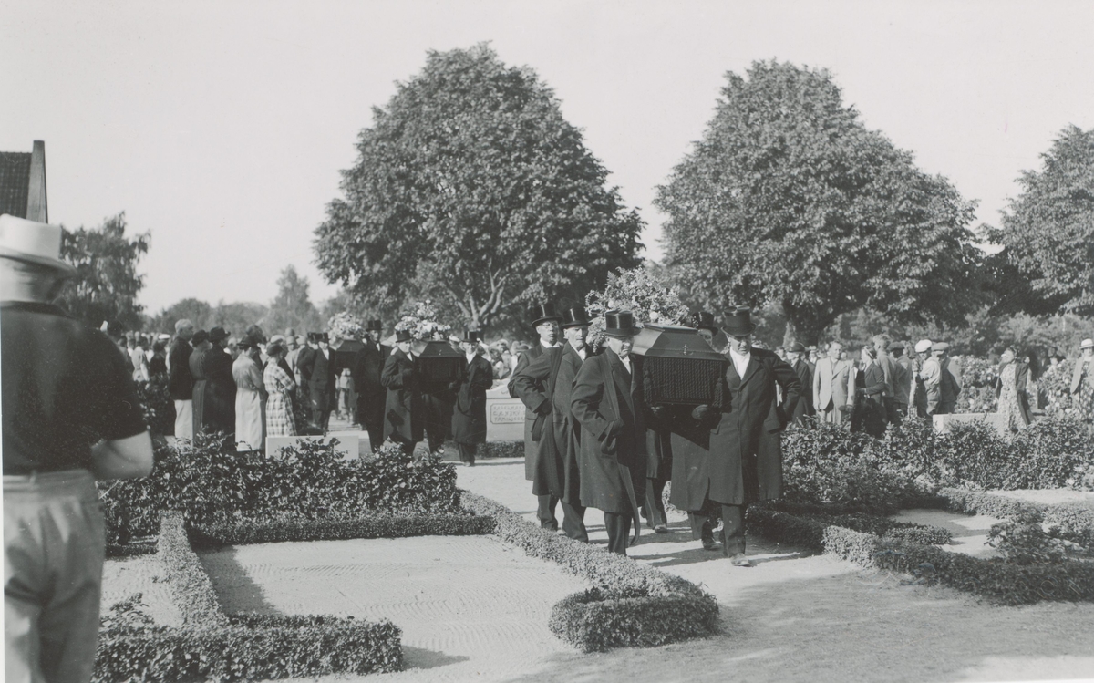 Bärare, i första raden, till vänster Wilén, Hildskog som nummer tre till vänster Blomberg.
