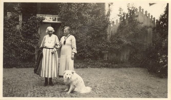 Ada Rydström, författarinna, Segersgärde och Anna Palm vid gästflygeln.