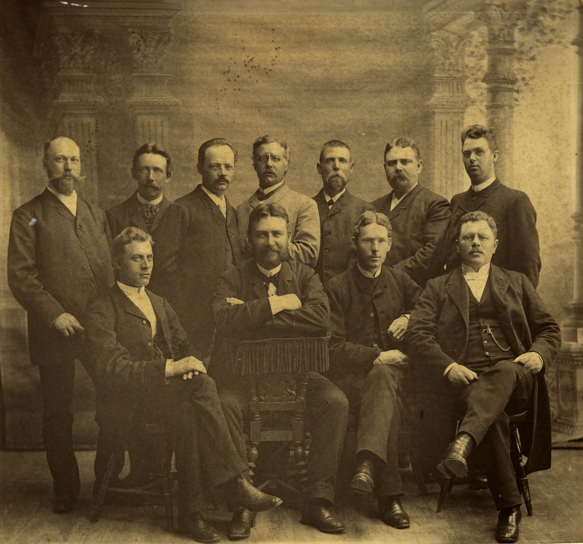 stadsfiskalen Söderling, Vimmerby, postmästaren Th. Holm, läroverksadjunkten Gustaf Thörning (borgholmsbo), läraren Josef Lundgren, tullförvaltaren Karl Malmberg, dennes broder Josef Malmberg, kronolänsman, Oskarshamn, stadskomministern Alfred Lindholm, som sammankallat kamraterna.