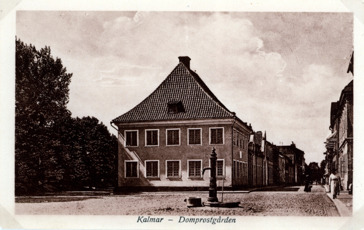 Domprostgården vid Lilla Torget i Kalmar. De omkringboende hämtade sitt vatten från den gamla pumpen.