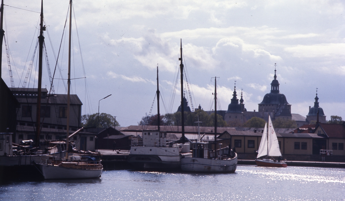 Bilden visar det inre av Kalmar gästhamn, det som en gång var Ölandshamnen. Dit kom skutorna med fisk och senare avgick färjorna därifrån, innan de flyttade till färjeläget bakom packhusen.