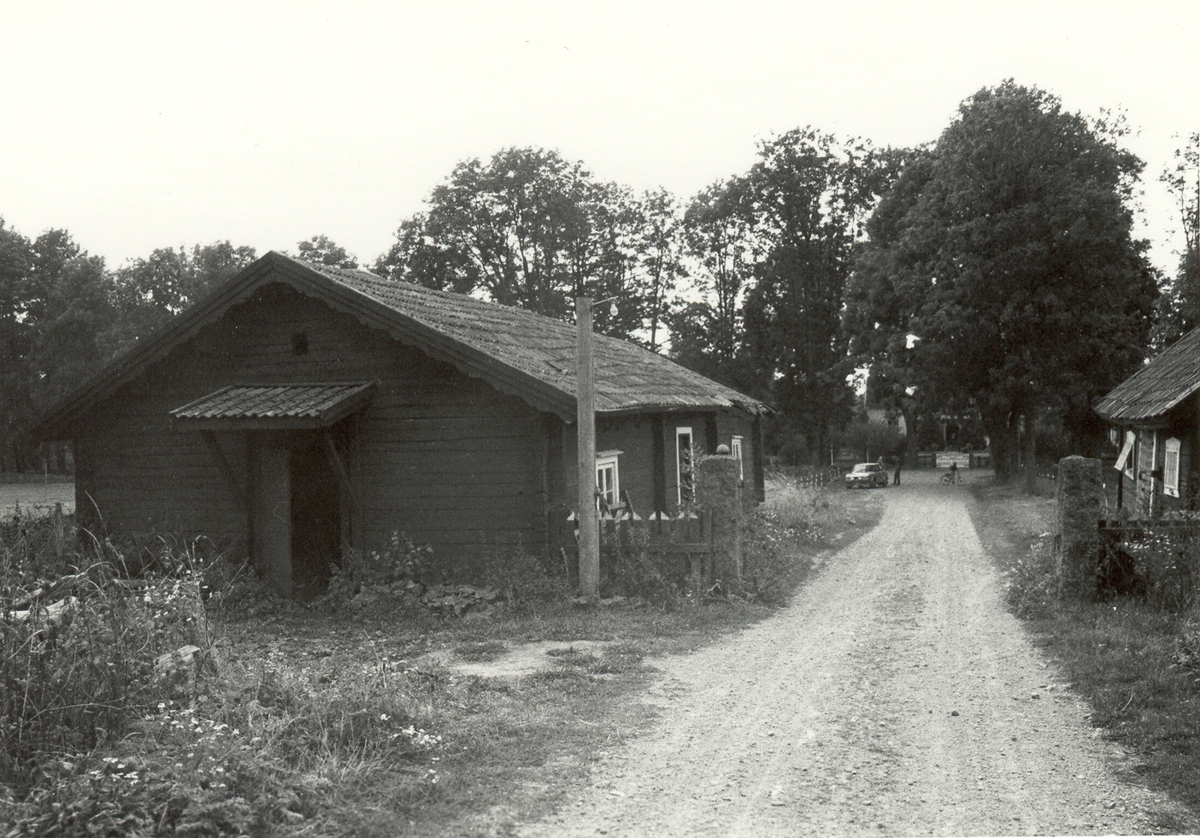 Från ladugården mot huvudbyggnaden. Magasinet. I bakgrunden huvudbyggnaden.