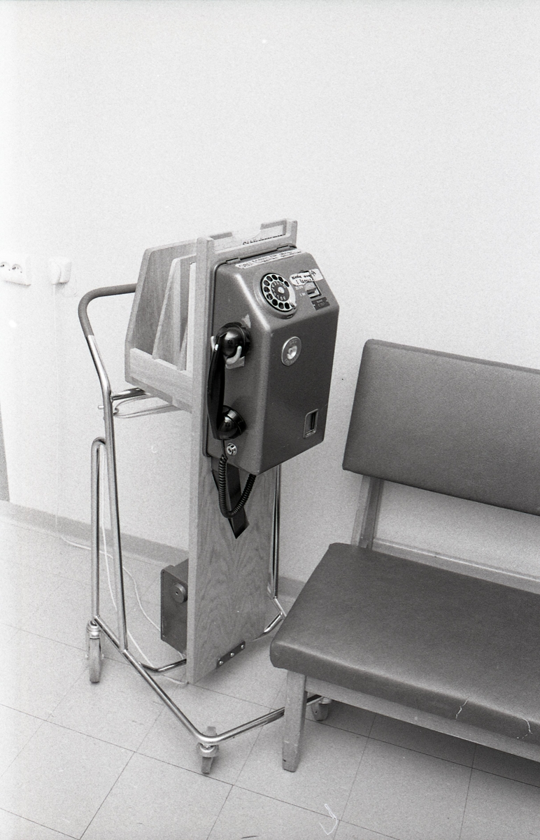 Gammal mynttelefon för patienter, Länssjukhuset.