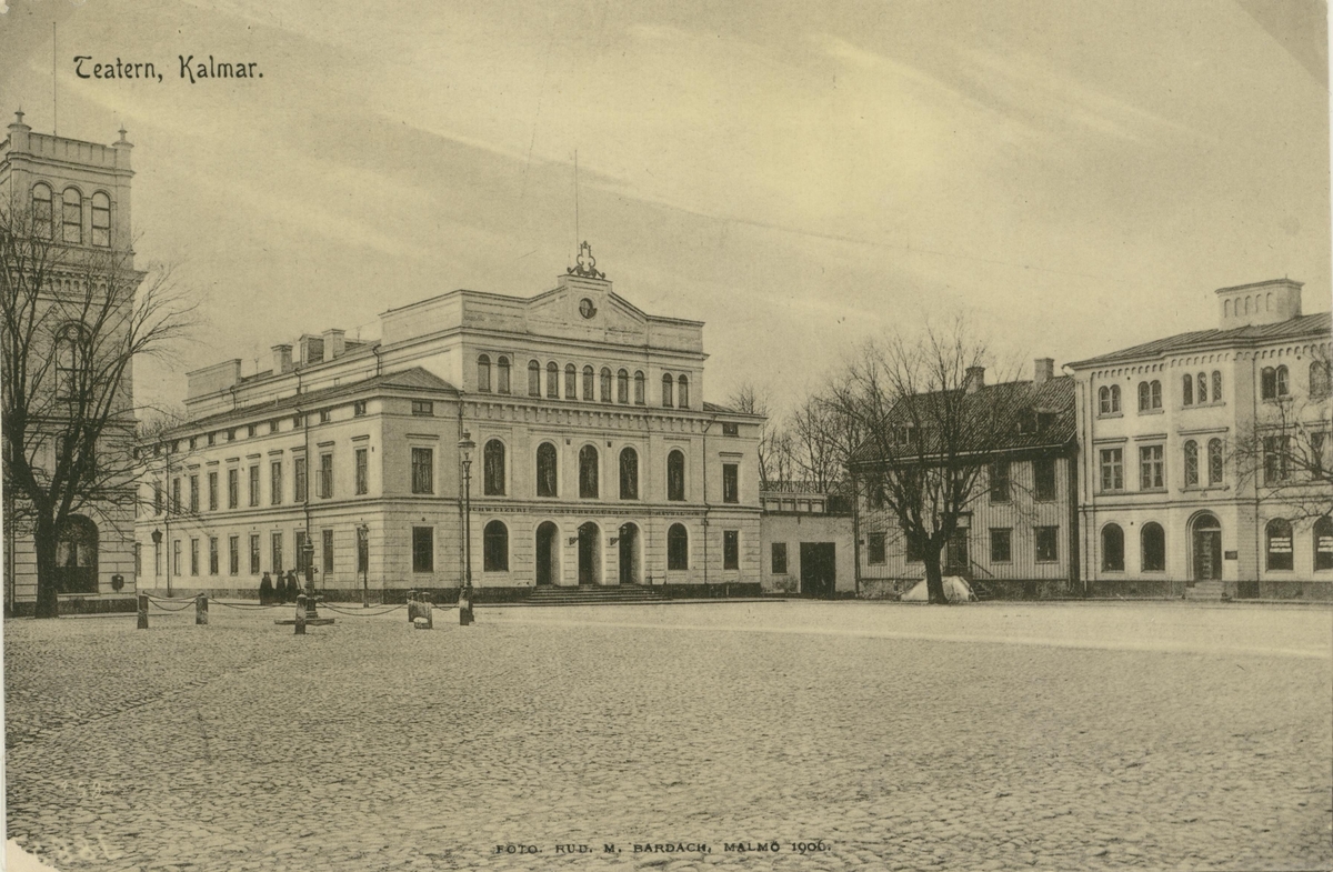 Kalmar Teater och Larmtorget på Kvarnholmen i Kalmar. På denna bild äver överbyggnaden till den komunala brunnen borttagen och ersatt av ett brunnslock.