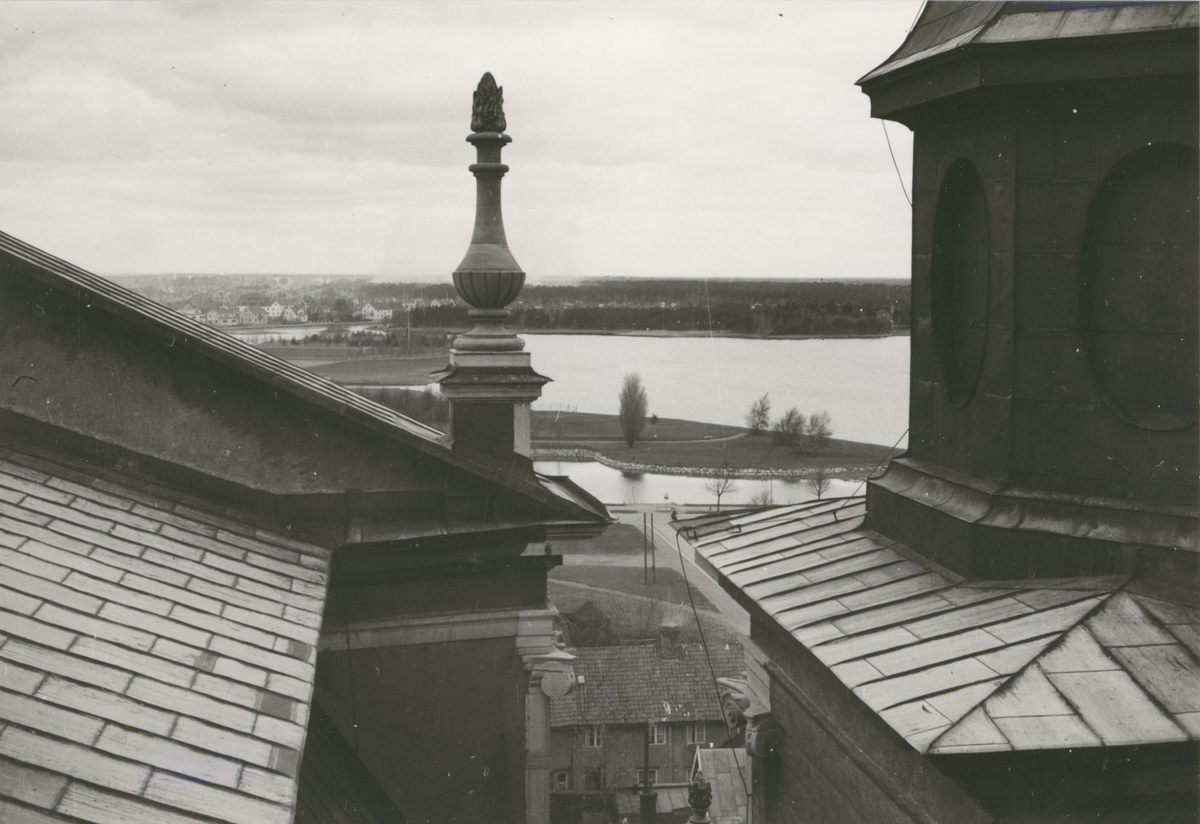 Parti av norra Kvarnholmen, Käringlåret och Rävspelet, från Kalmar domkyrka.