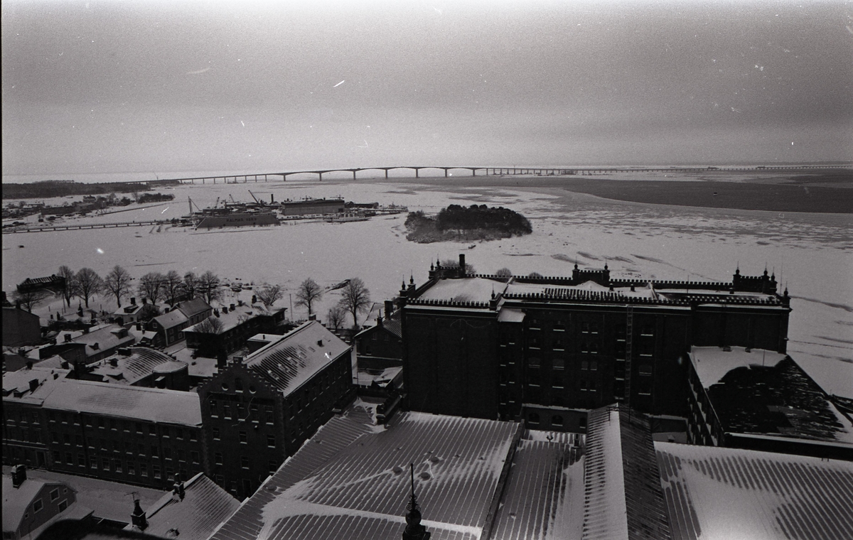 Utsikt över Kvarnholmen från högsta punkten på Ångkvarnen, Kalmar.