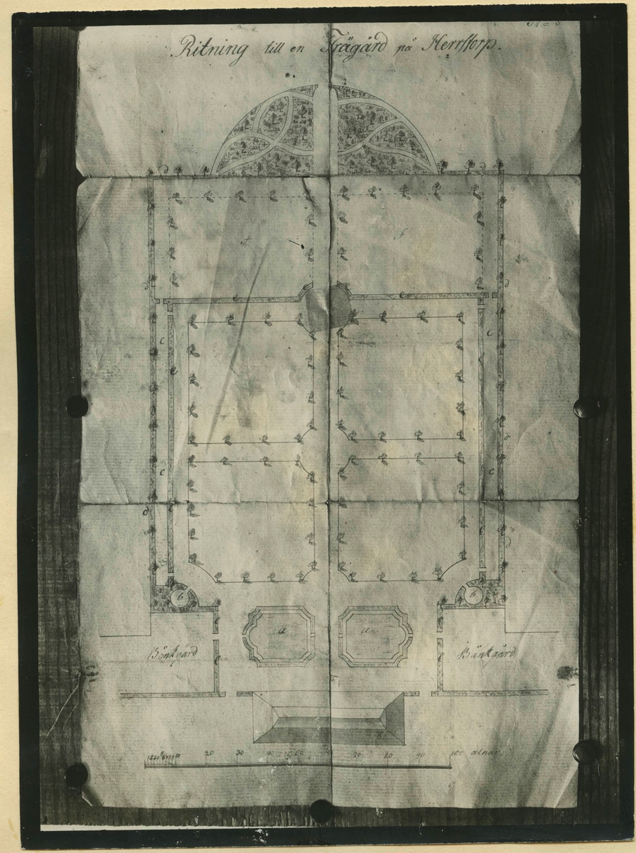 Herrestorps gårdarkiv. Ritning till park av kunglig sekreterare Carl Jacob Drangel c:a 1800.