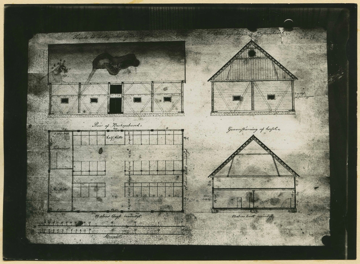 Herrestorps gårdarkiv. Ritning till ladugård vid utgårdens bastefall utfördes.