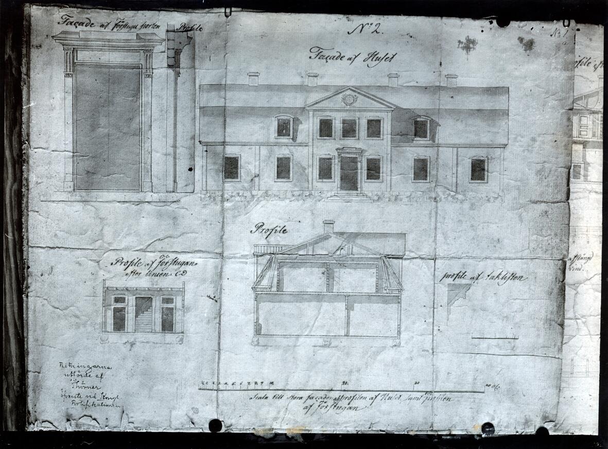 Herrestorps gårdarkiv. Ritning till ombyggnad av huvudbyggningen, utförd 1802 av överste Thörner.