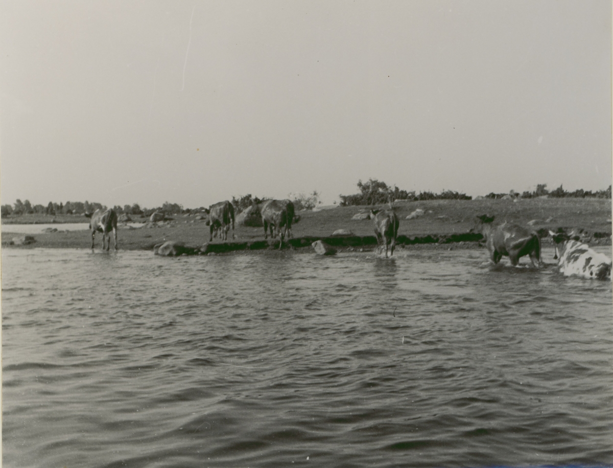 Kreaturen går iland på den nya betesplatsen efter att ha simmat över från en annan holme.
