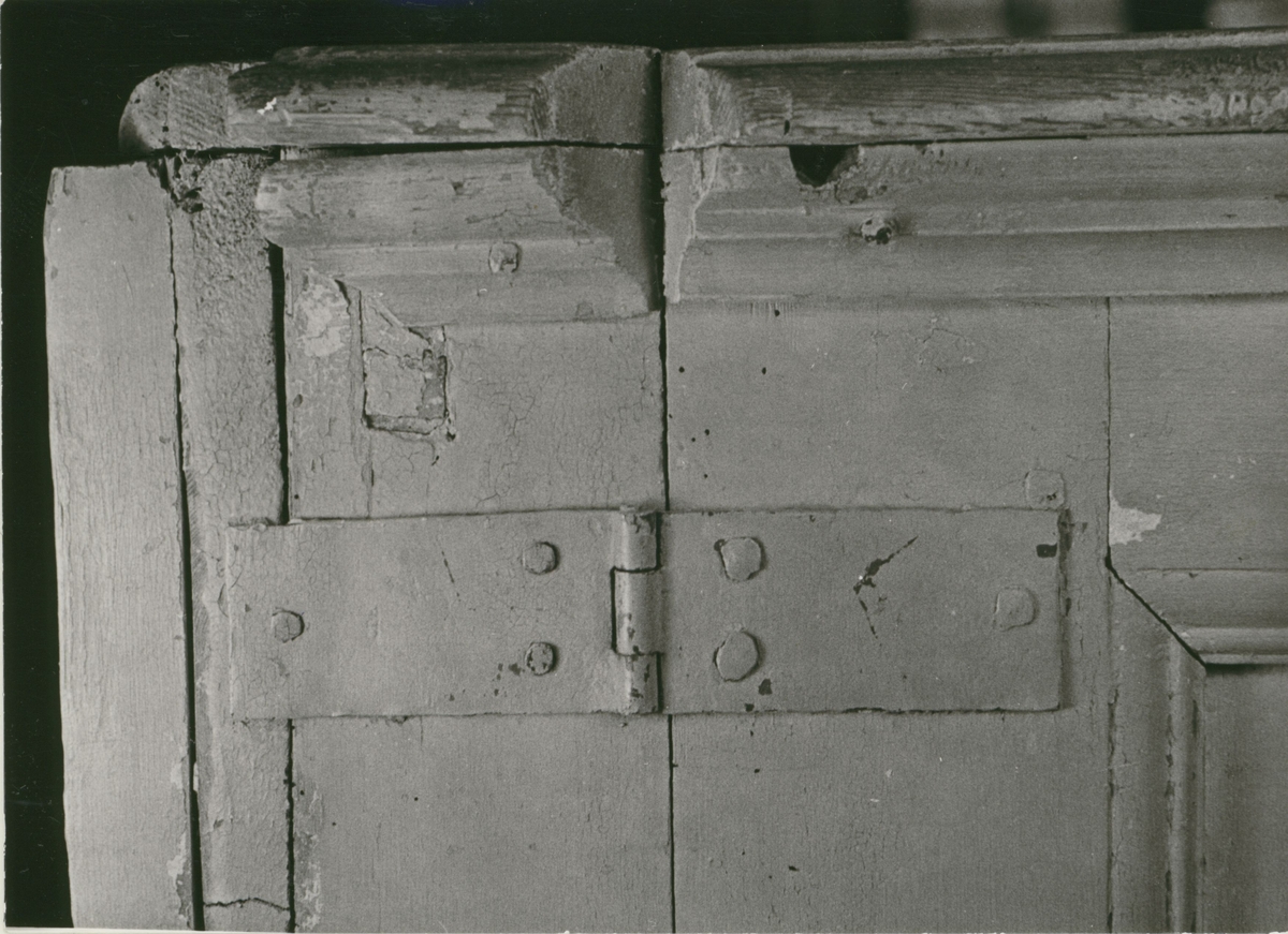 Bänkinredningen i slottskyrkan; detalj av dörr med gångjärn.