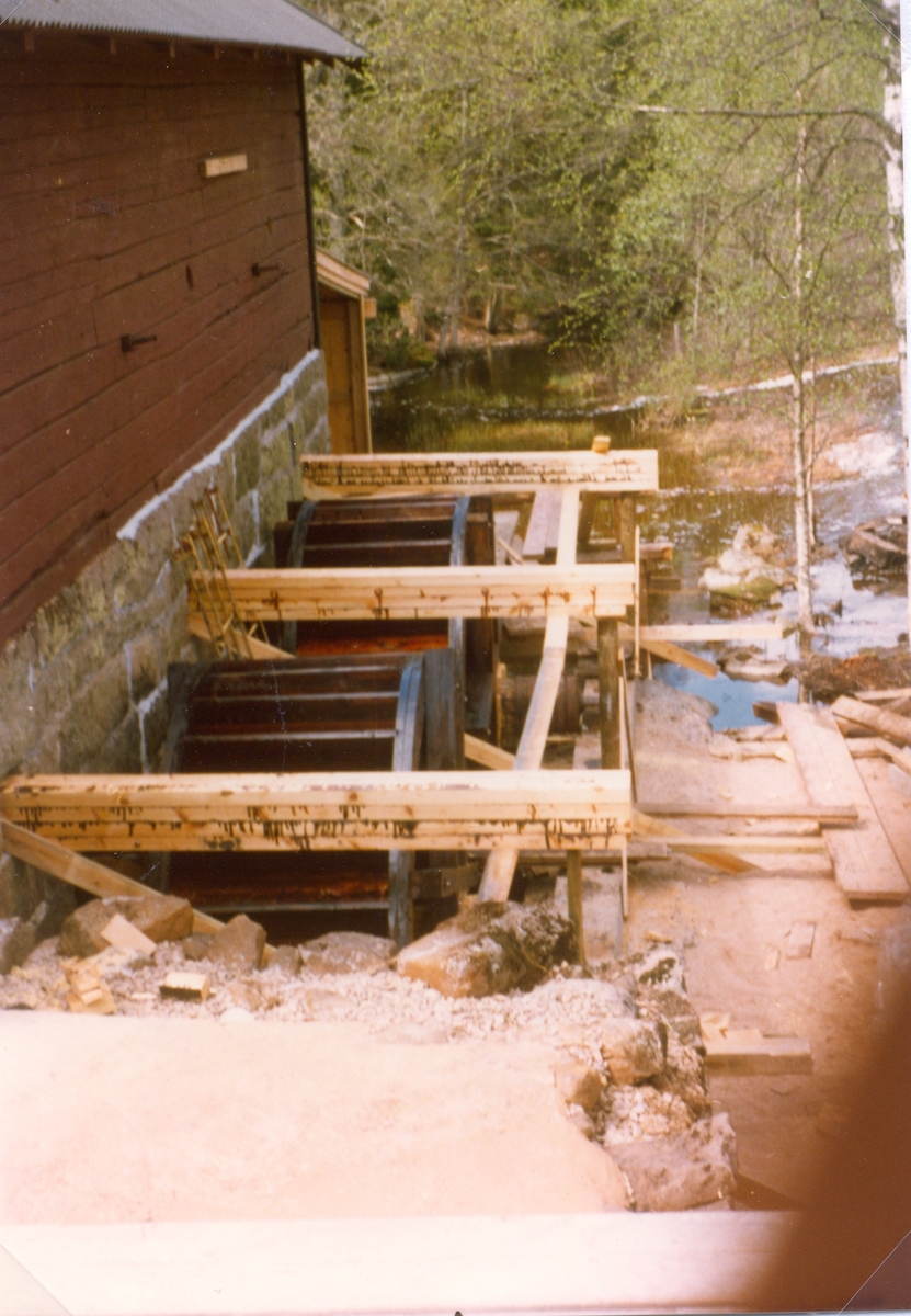 Vattenhjul på Stensfors kvarn vid restaureringen 1976-1977.