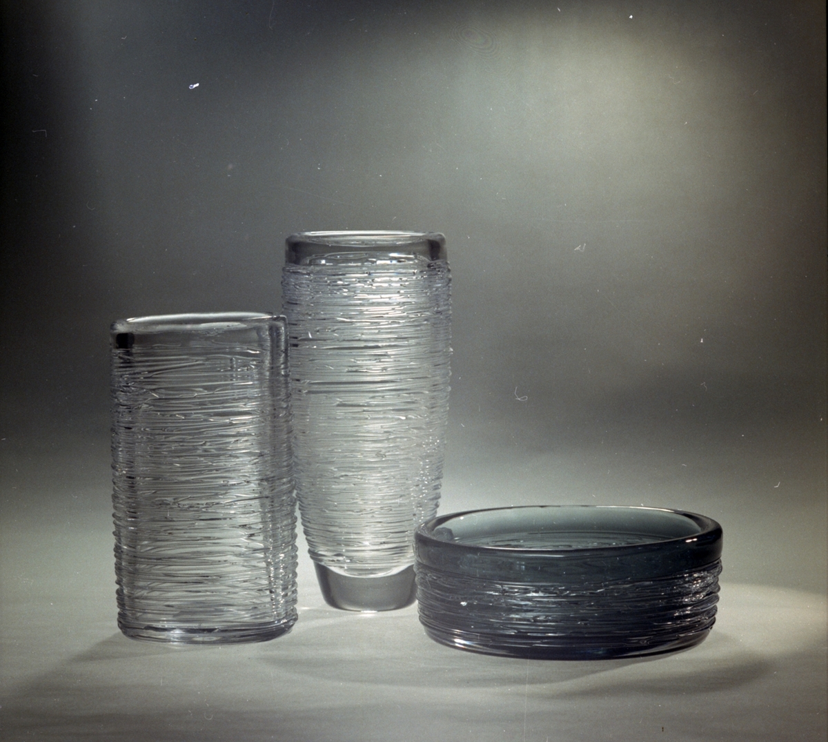 Vaser och eventuellt ett askfat ifrån Skrufs Glasbruk AB.