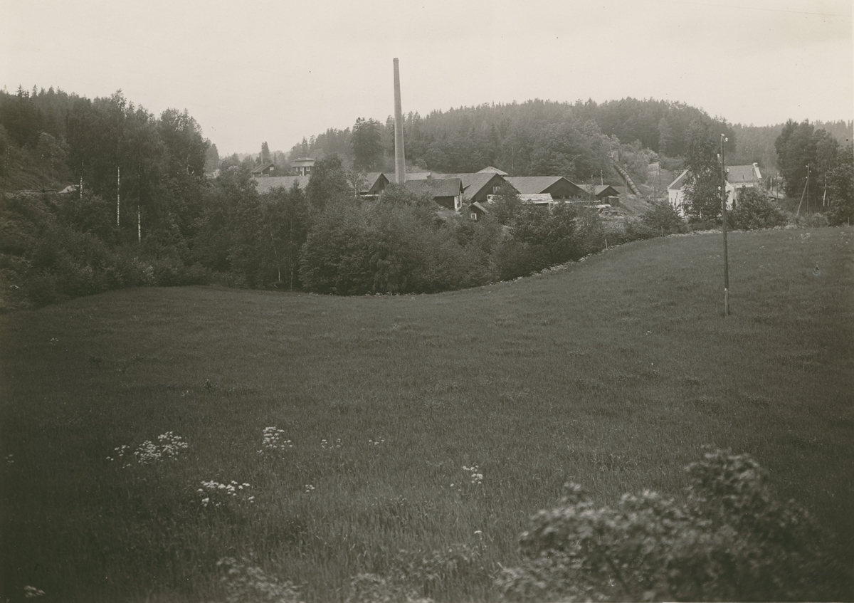 Forsaströms bruk. Till höger det nya kraftverket. Till vänster. längst in skymtar herrgården. I mitten ligga de mestadels nya verkbyggnaderna grupperade kring ån.