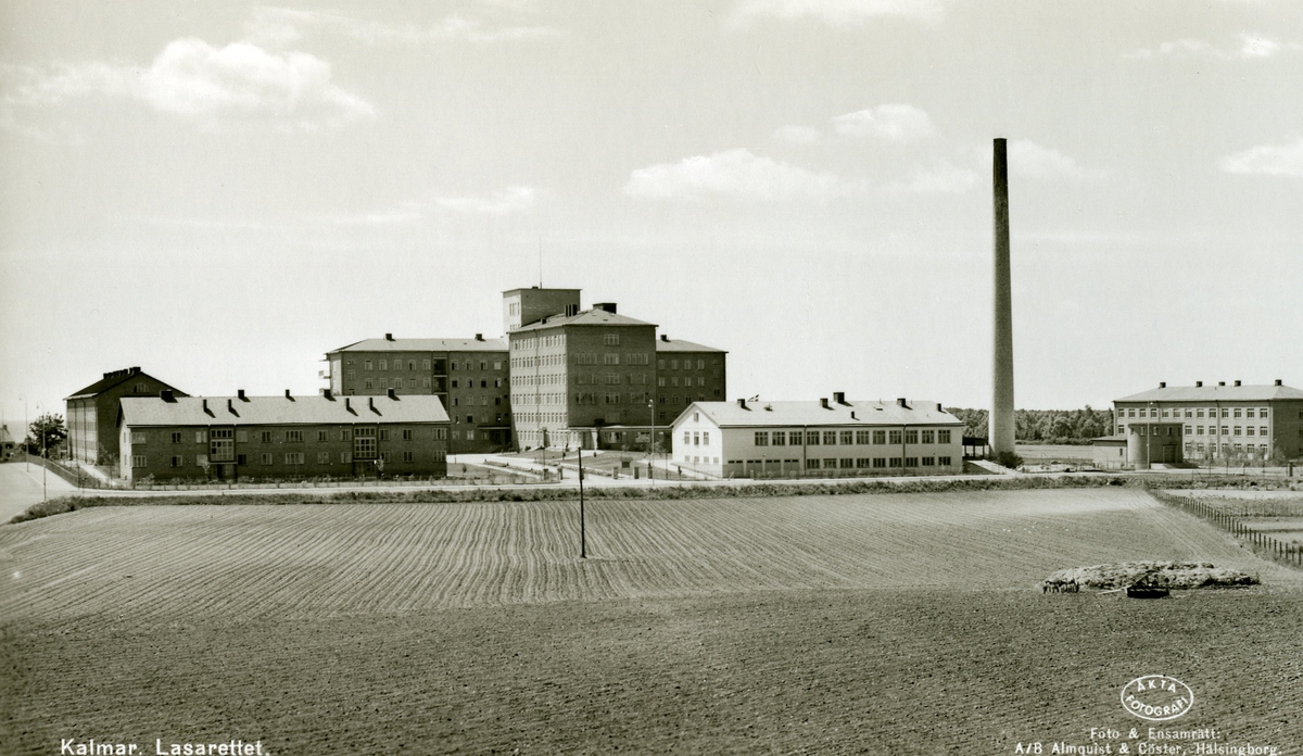 Vykort med Kalmar lasarett som det såg ut omkring 1980.