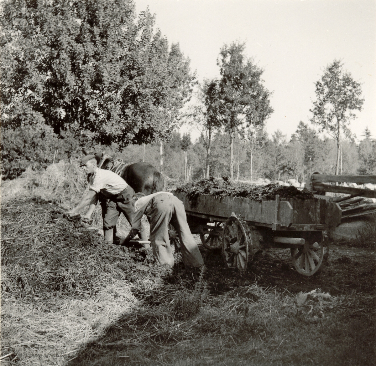 Gödsel lastas för att köras ut på åkern, Erlandsson, Valåkra by.