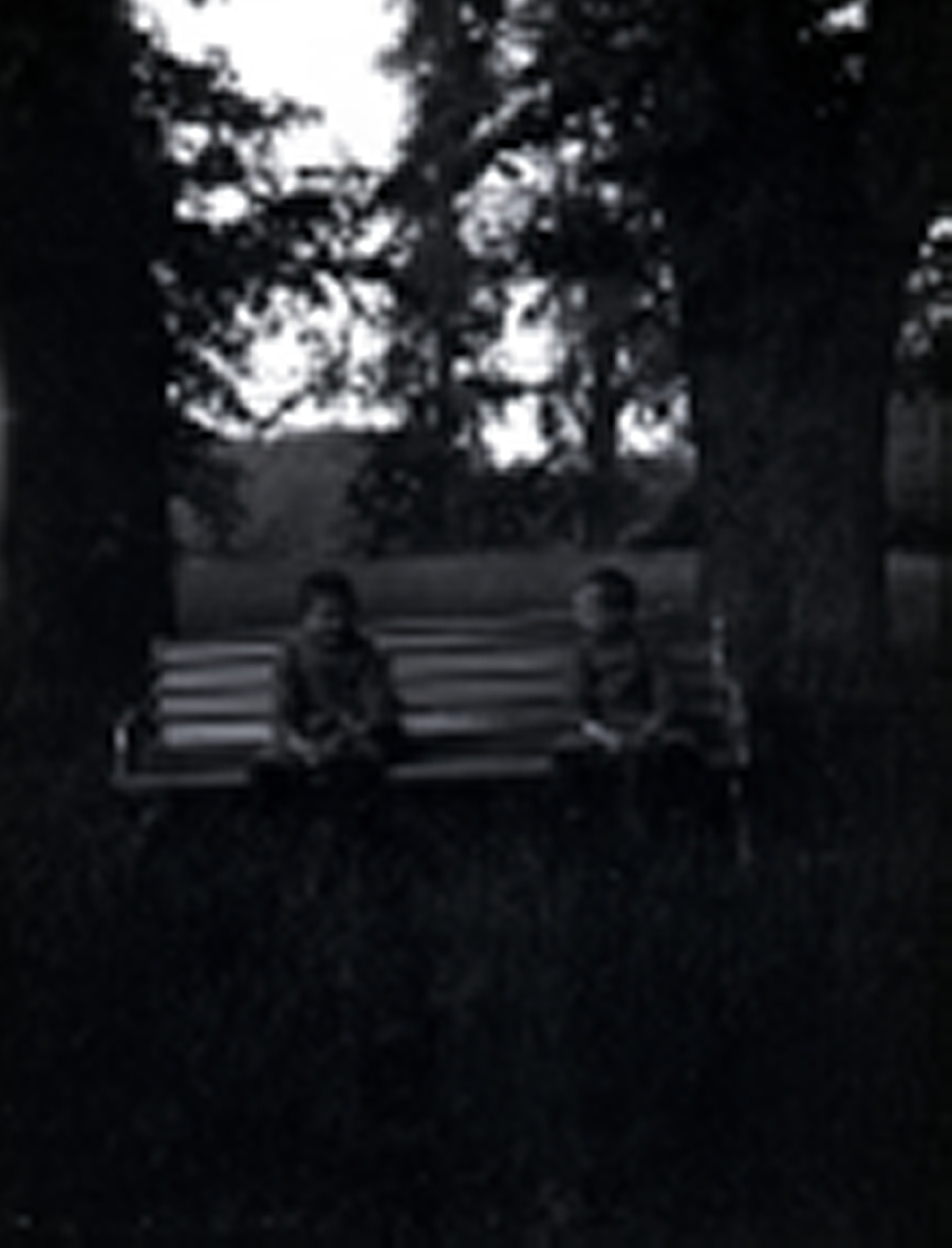 Carl Henrik och Hugo på en bänk på Tuna gård.