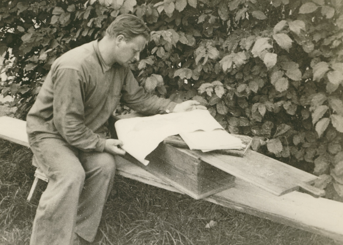 Järnudda byakista. Byamannen Albin Karlsson läser byns köpebrev av 1777, vari Pechlin säljer byn till "7 hövliga och beskedliga dannemän".