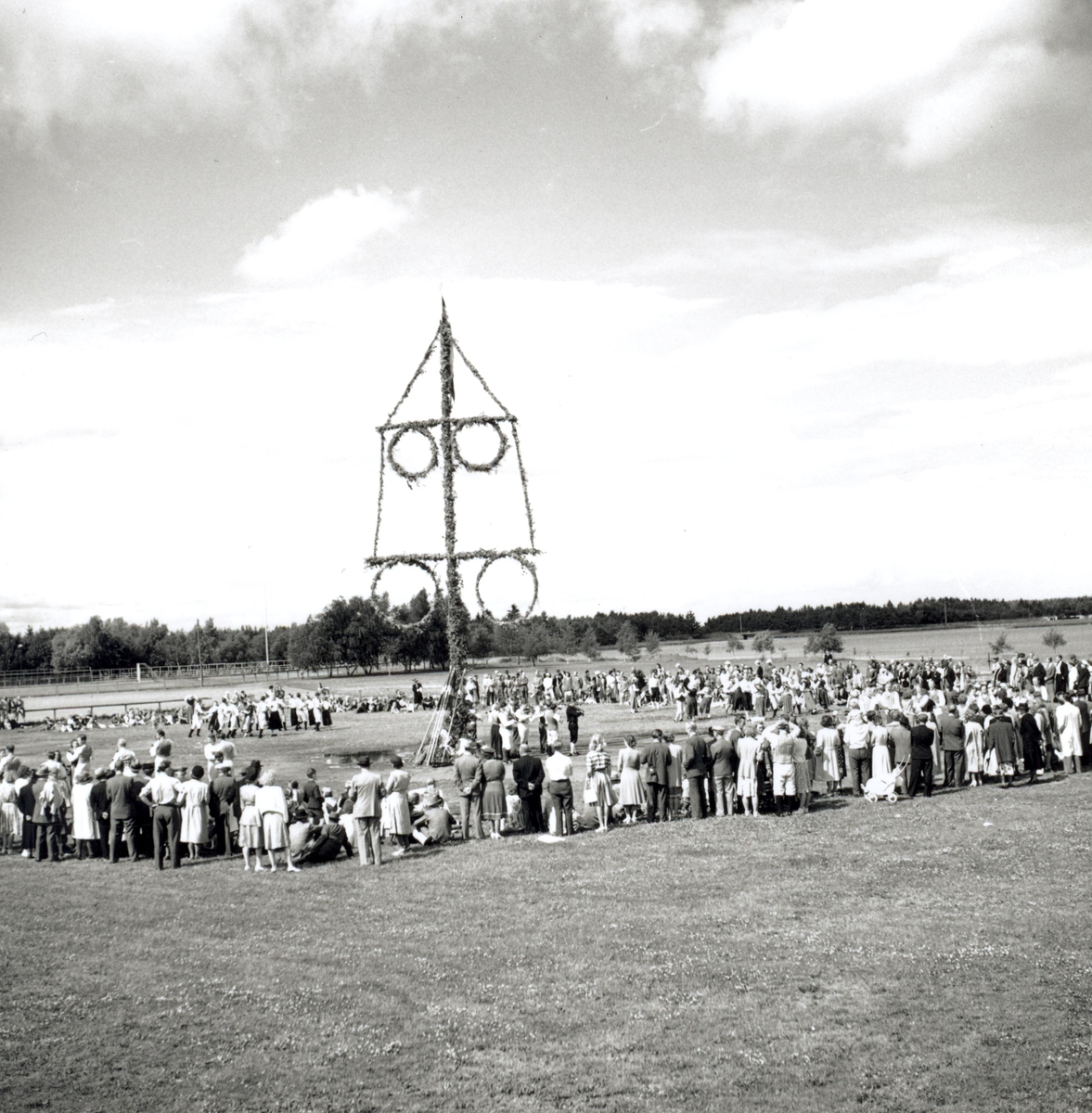 Dans kring midsommarstången under hantverksmäsan i Kalmar 1947.