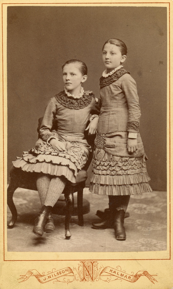 Systrarna Hilda och Kjerstin Sabelström. (Hilda den sittande på båda korten.