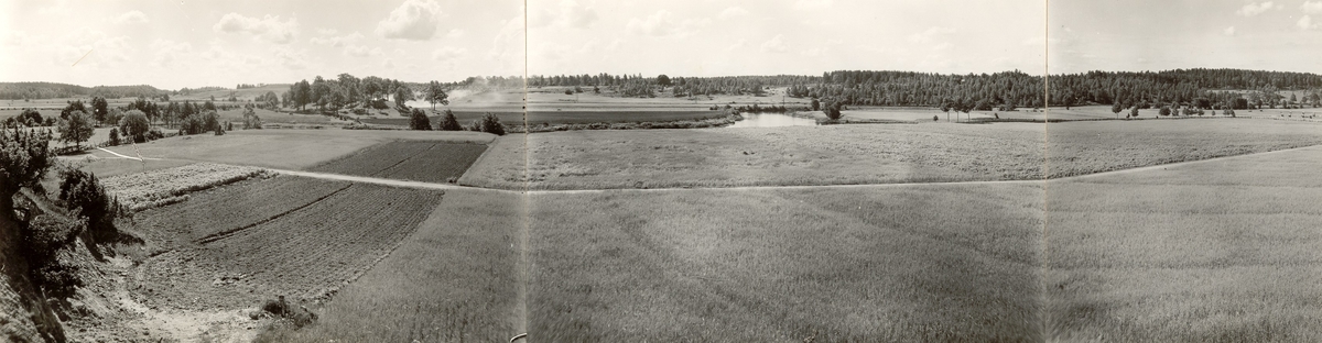 Valåkra by. Hovrängsgärdet från Åsen mot Emån. Mitt över bilden vägen till Drageryd. Bilden sammansatt av tre.