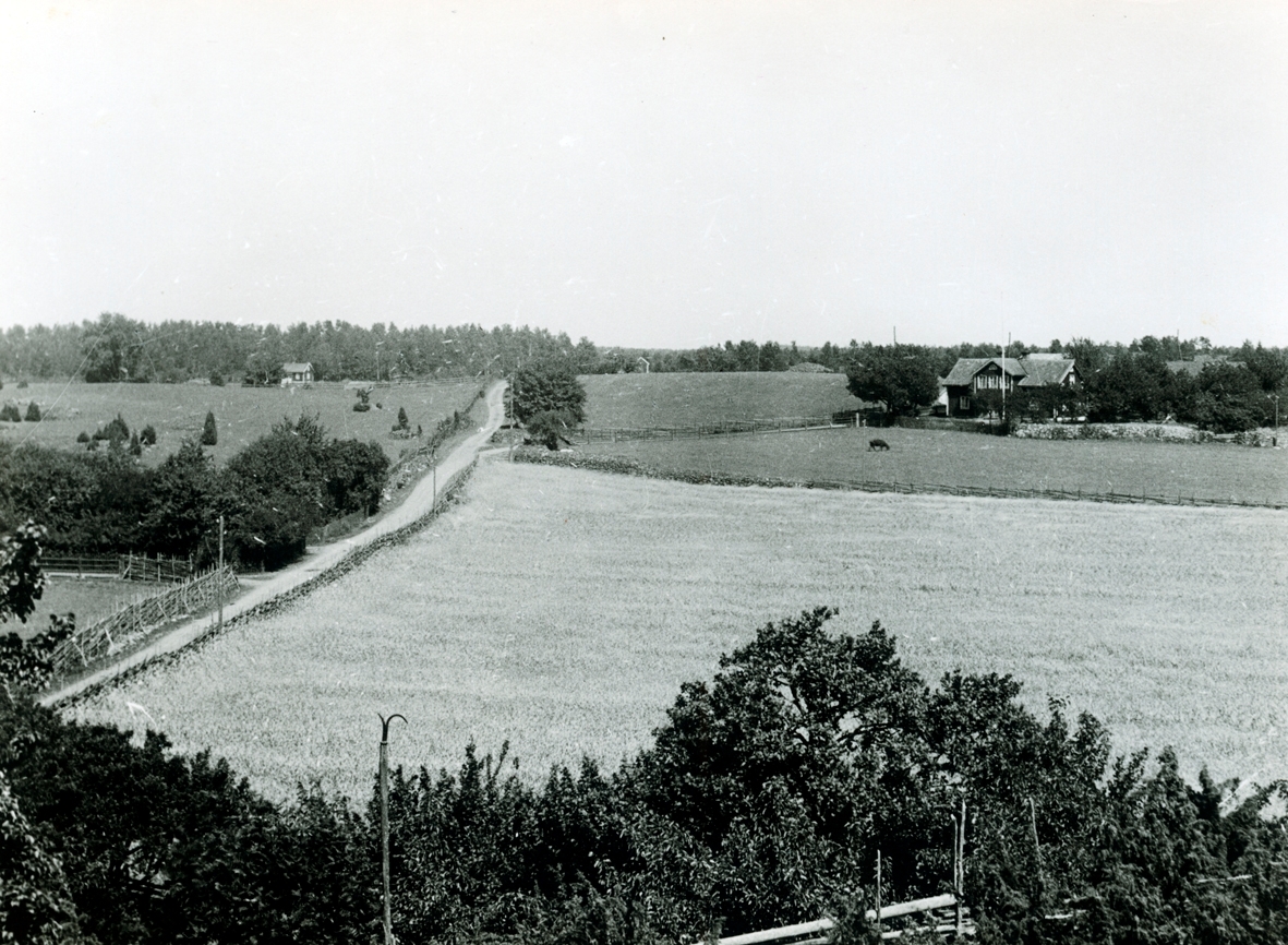 Utsikt från Höge backe mot nordost. Till höger Bomans (ägare Edvin Olsson). Vägen går till Lerhagen.