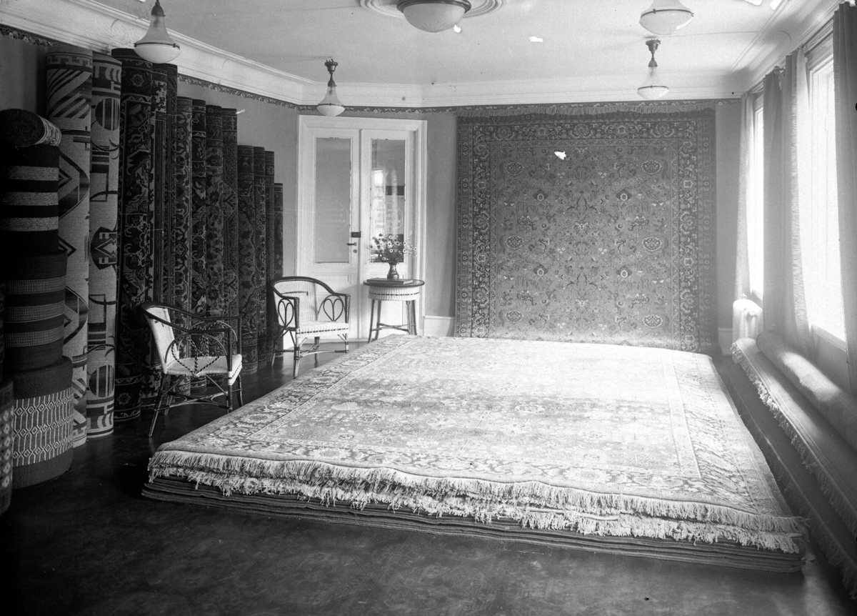 Interiör från Severin Nilssons möbelaffär på Kvarnholmen, mattavdelningen.