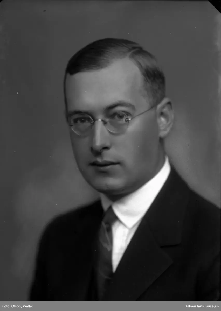 Ateljébild på en man. Enligt Walter Olsons journal är bilden beställd av ingenjör Eriksson ifrån Landshövdingegatan 6 i Kalmar.
