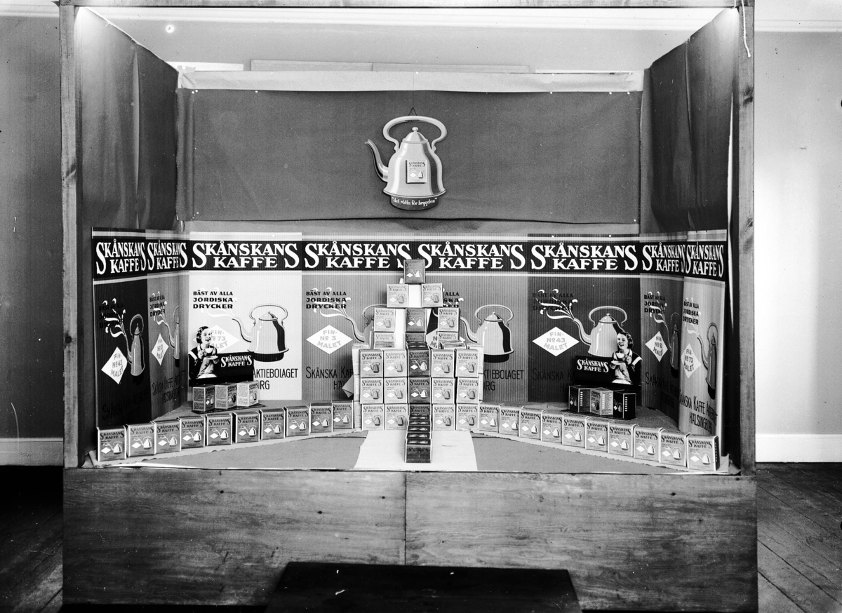 En skyltningsmonter ifrån Skånskans kaffe. Enligt Walter Olsons journal är bilden beställd av Kalmar handelsinstitut.