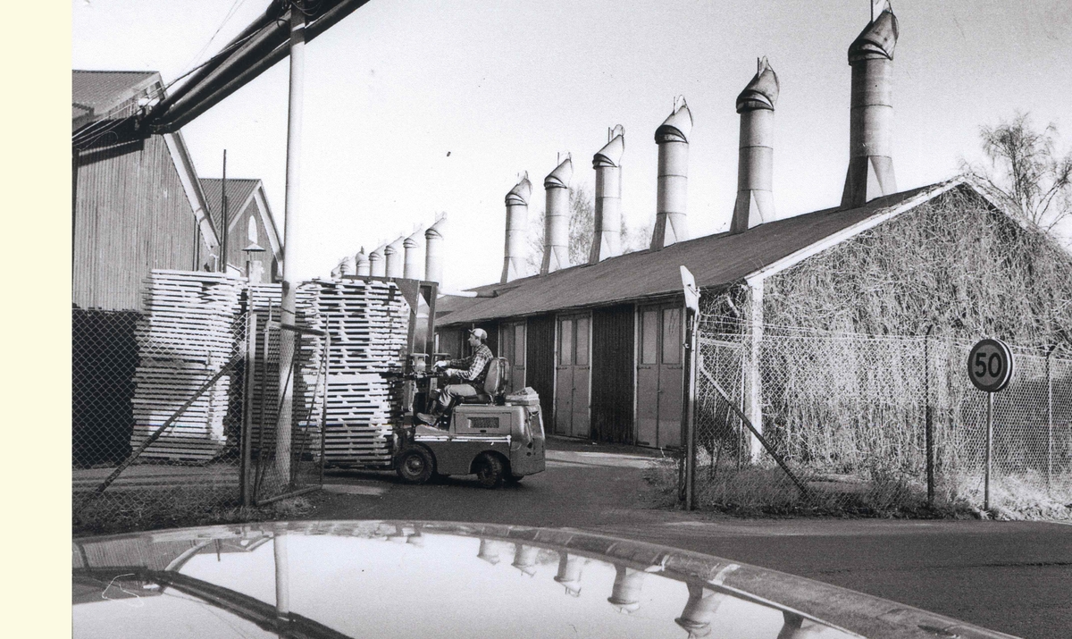 En man kör lastpallar med gaffeltruck på Elfverson & Co.