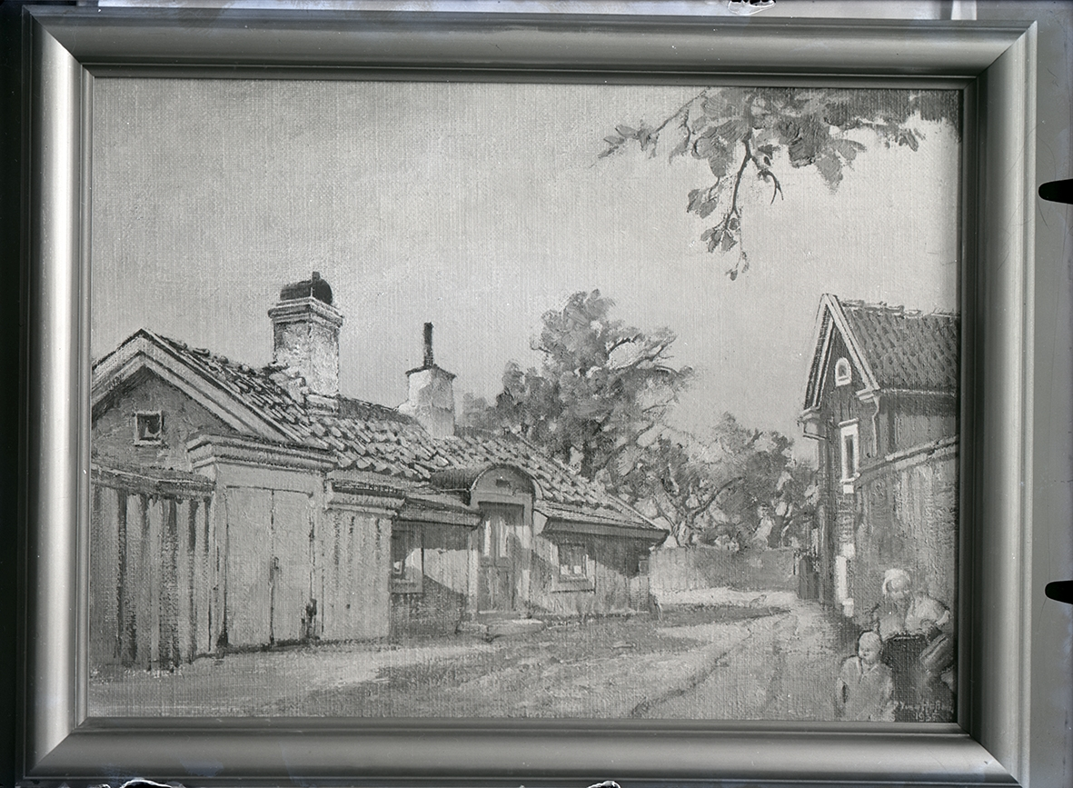Målning av konstnären Ivan Hoflund, född 18 oktober 1887, död 8 augusti 1948 i Kalmar, begravd i Gärdslösa. Han var son till kyrkoherden i Gärdslösa på Öland Erik Hoflund och Therese Hultcrantz. Ur Walter Olsons negativsamling.