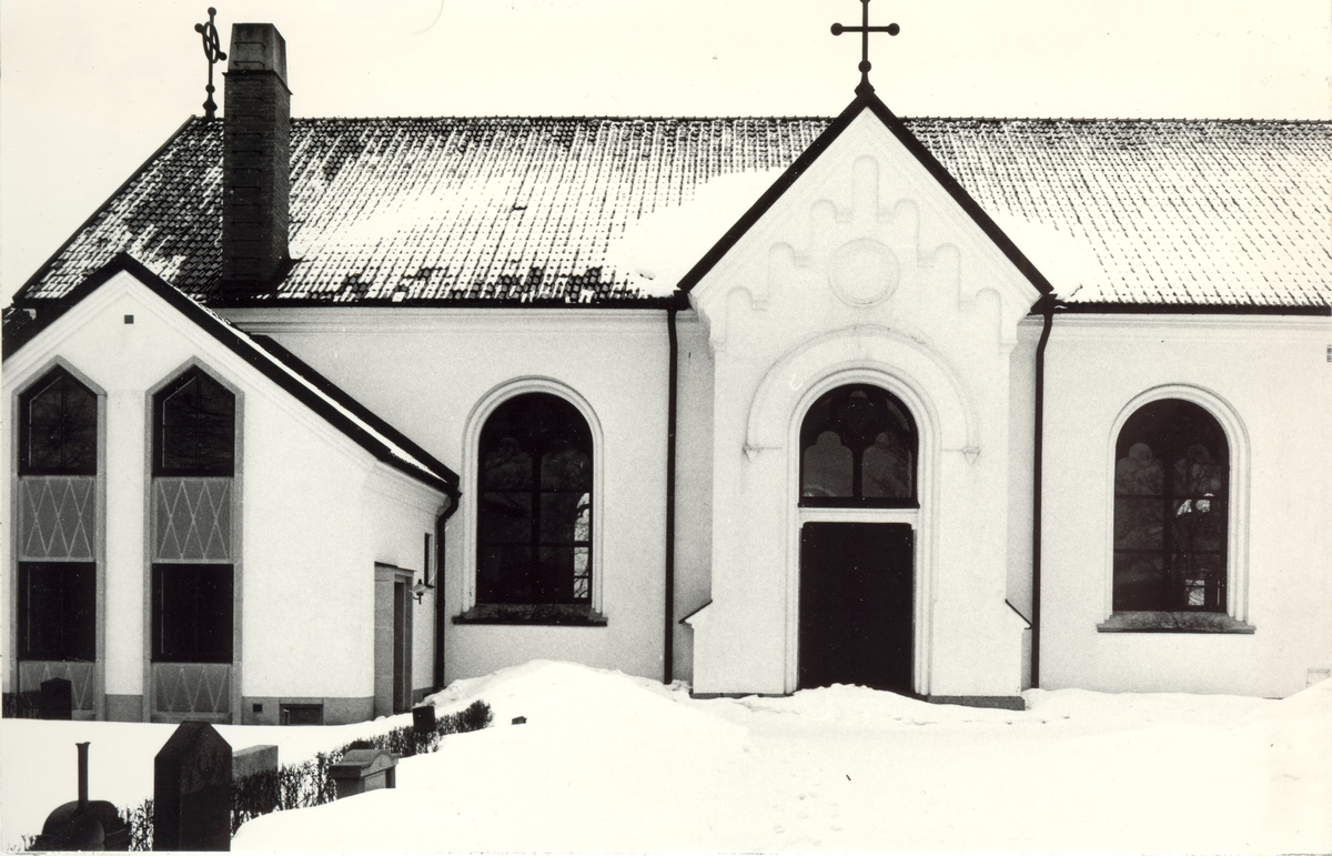 Fågelfors kyrka i vinterskrud.