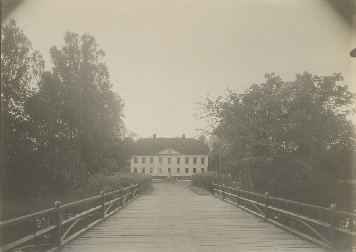 Huvudbyggnaden på Kristinelunds herrgård mot ån.