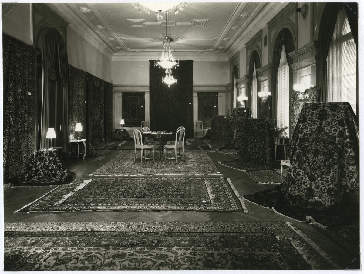 Teaterkällarens stora festvåning. Förmodligen försäljning av orientaliska mattor.