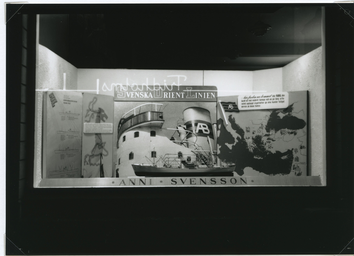 Skyltfönster till Annie Svenssons Kappaffär 1945-05-24.