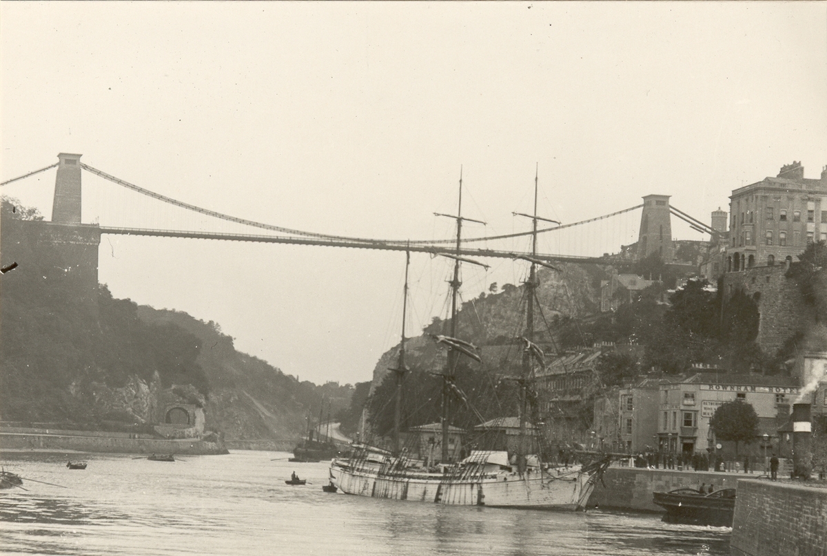 Barken Superior av Gefle (1895.) 511 ton, b. Gefle 1879. Hängbron är Clifton Suspension Bridge över floden Avon nära Bristol.