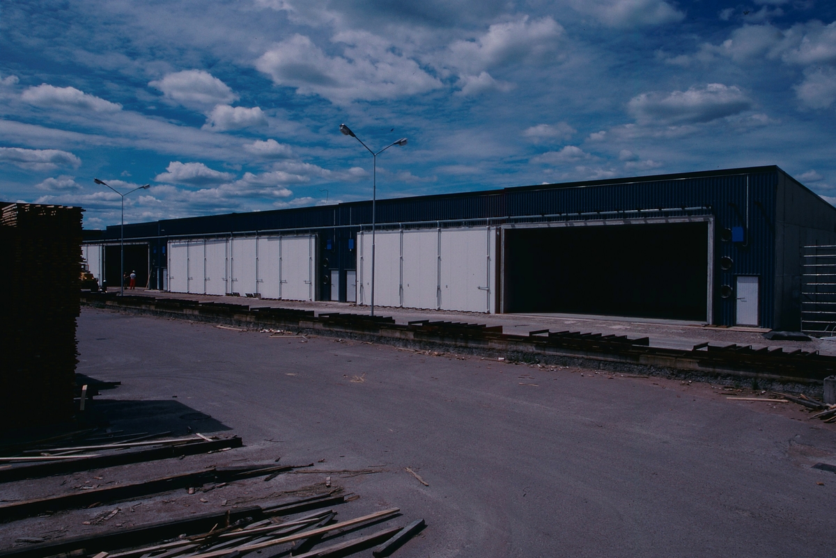 Magasinsbyggnad vid träindustri i Nybro, möjligen Kährs.