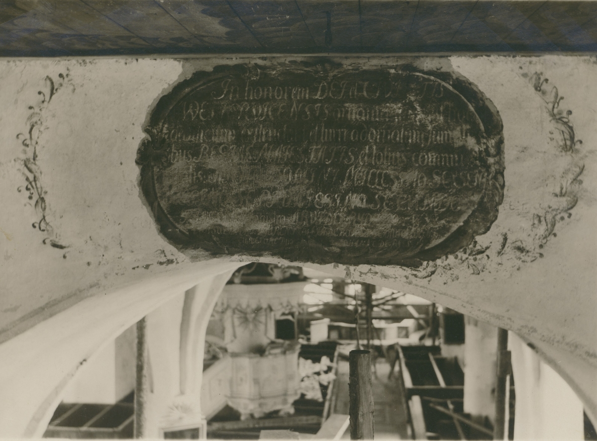 Inskriptionsretusch på tornets vägg. i Sankta Gertruds kyrka.