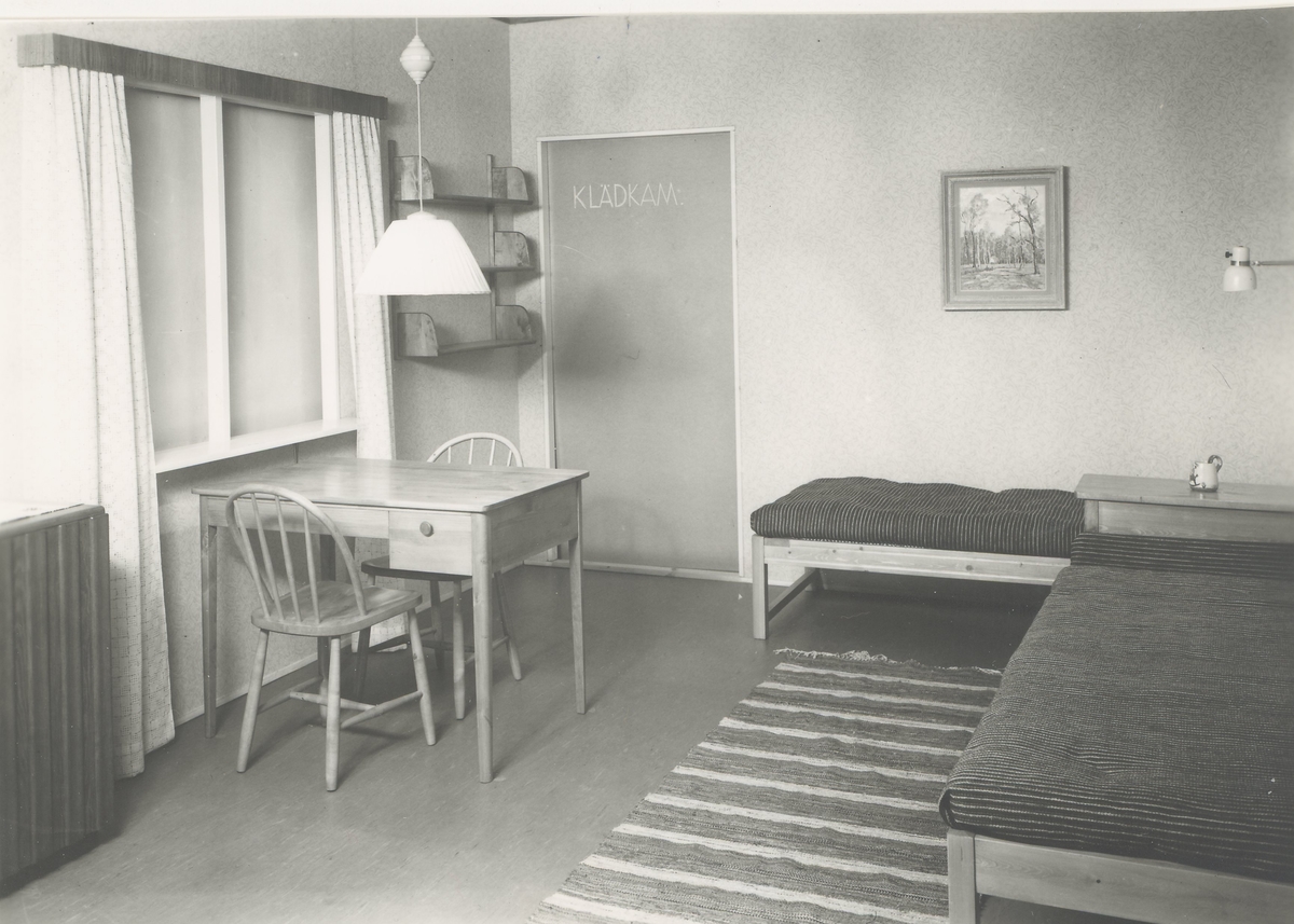 Ett exempel på hur ett sovrum kunde se ut på 1940-talet.
