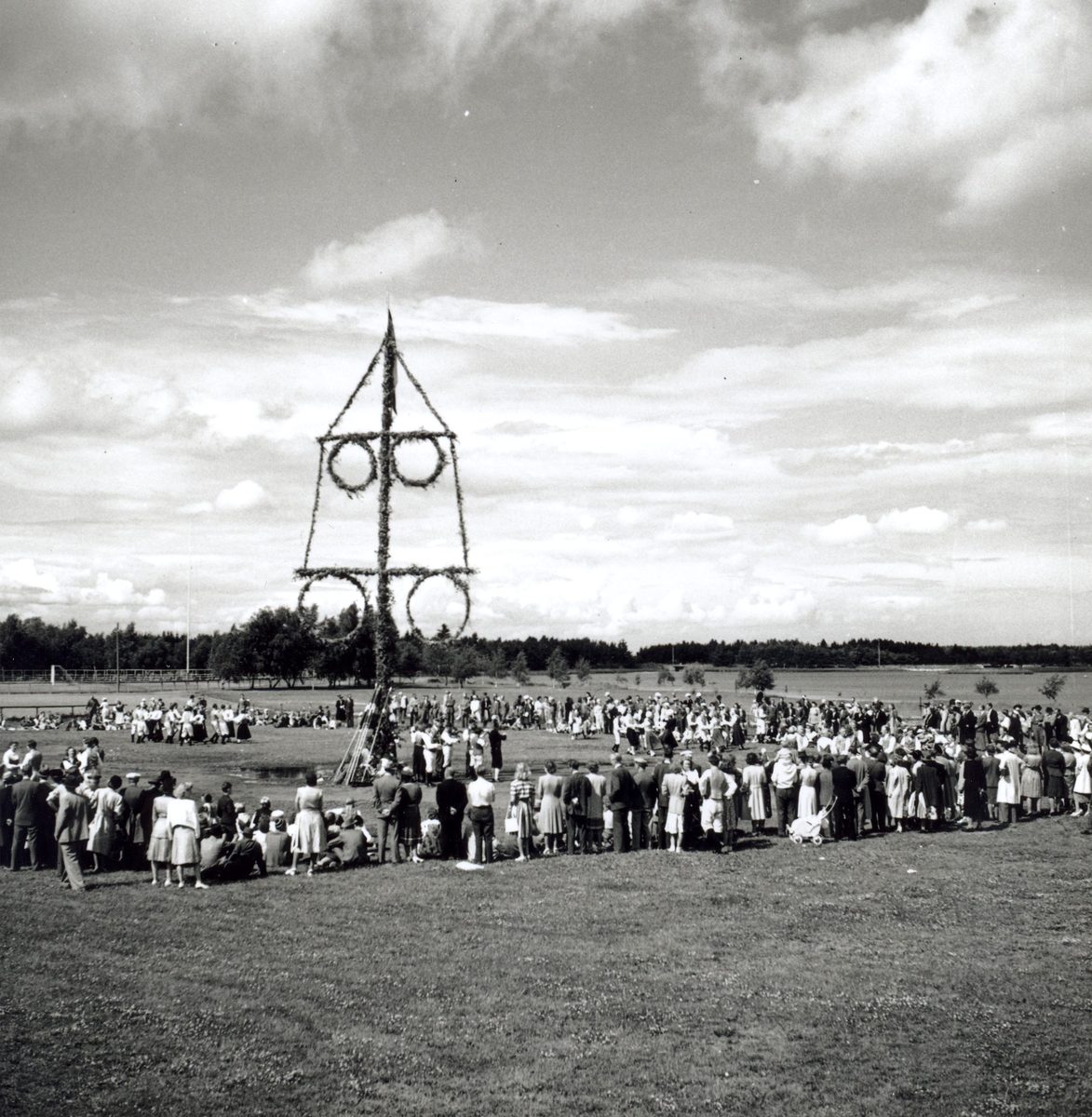 Midsommarfirande vid Fredriksskans under hantverksmässan i Kalmar 1947.