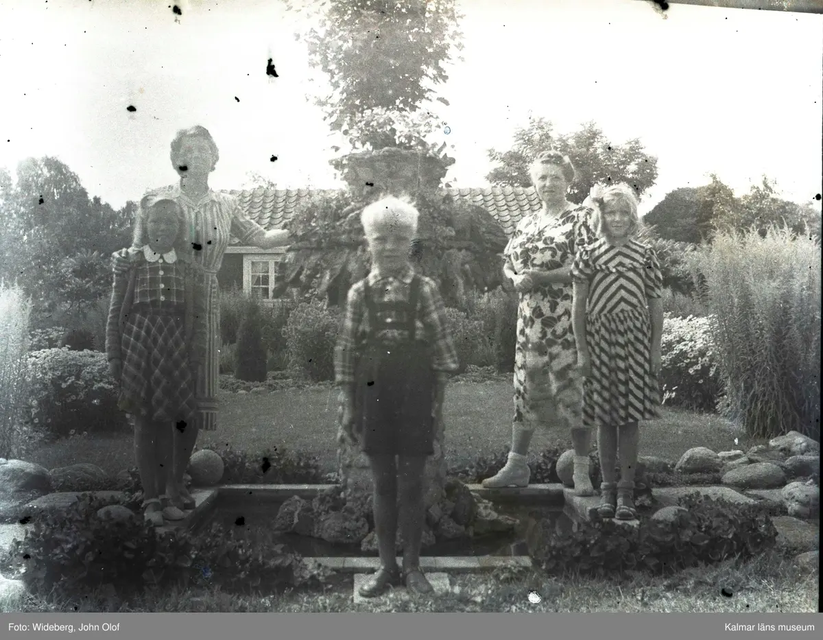 Kvinnor och barn i Widebergs trädgård.