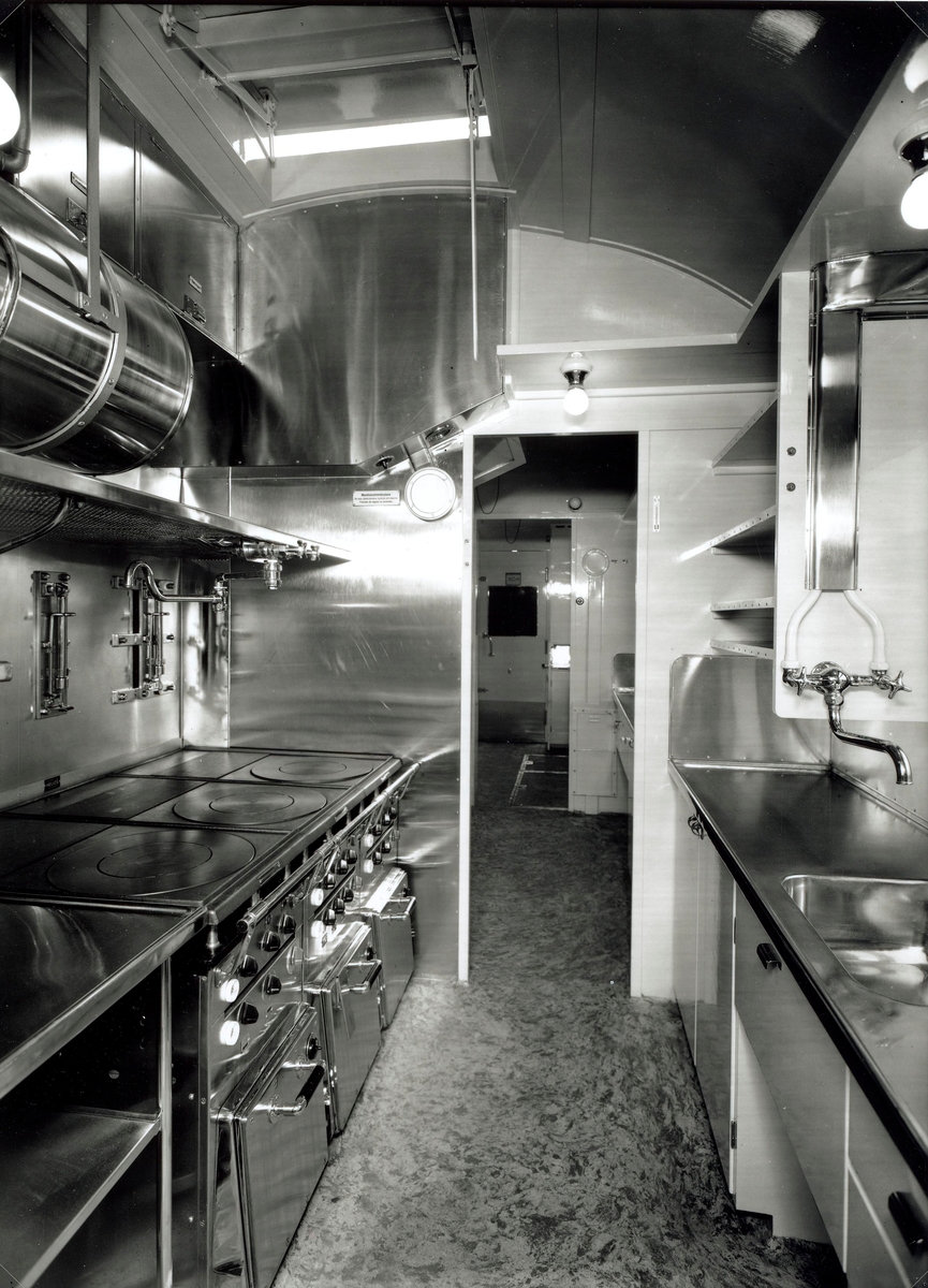Interiör från köket i en restaurangvagn som är tillverkad på Kalmar Verkstads AB.