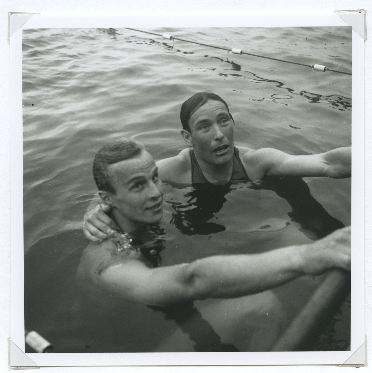 Motiv från SM i simning, som 1946 hölls vid Långviksbadet i Kalmar.