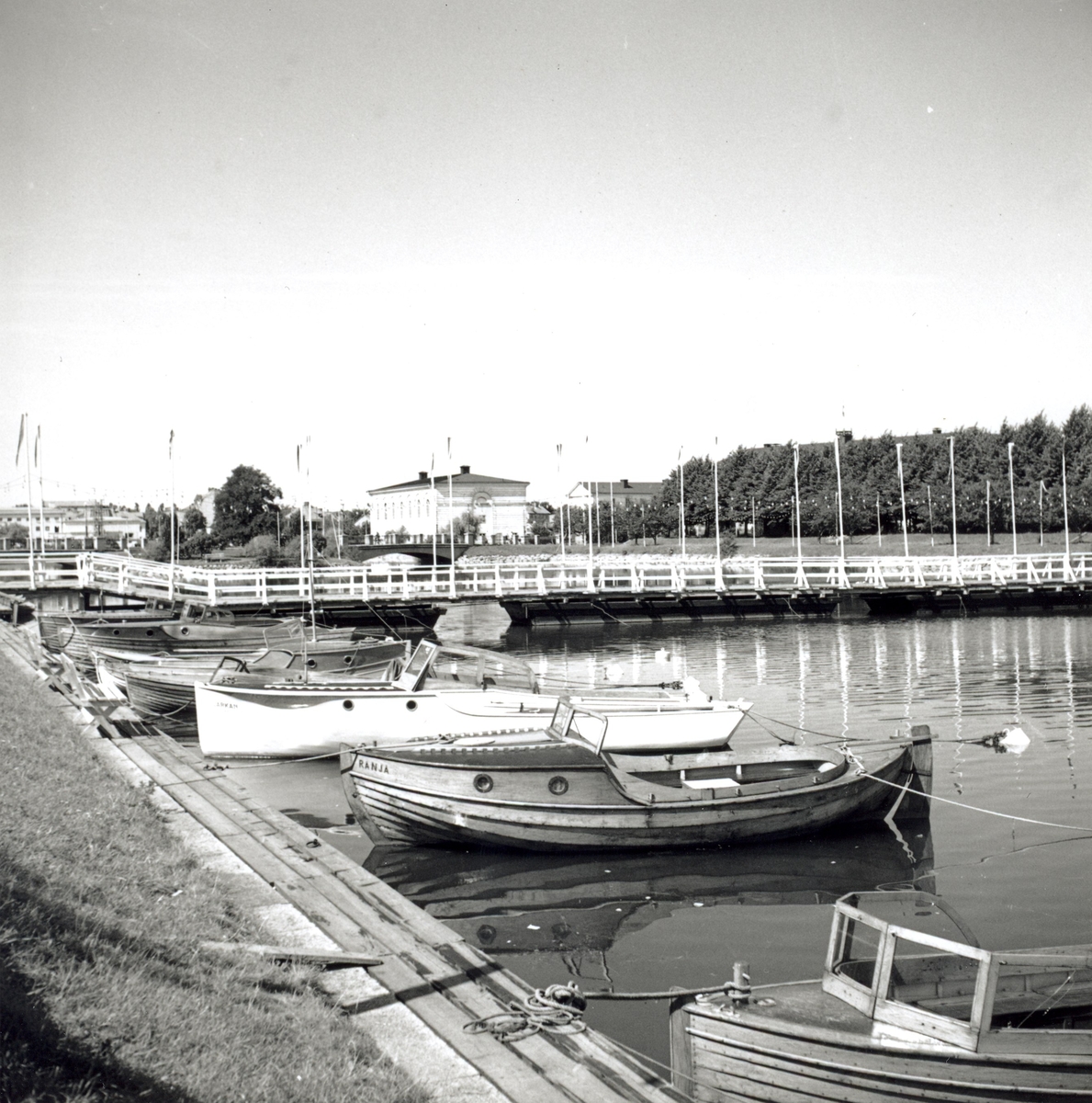En bro över Fredriksskanskanalen som byggdes i samband med hantverksmässan 1947.