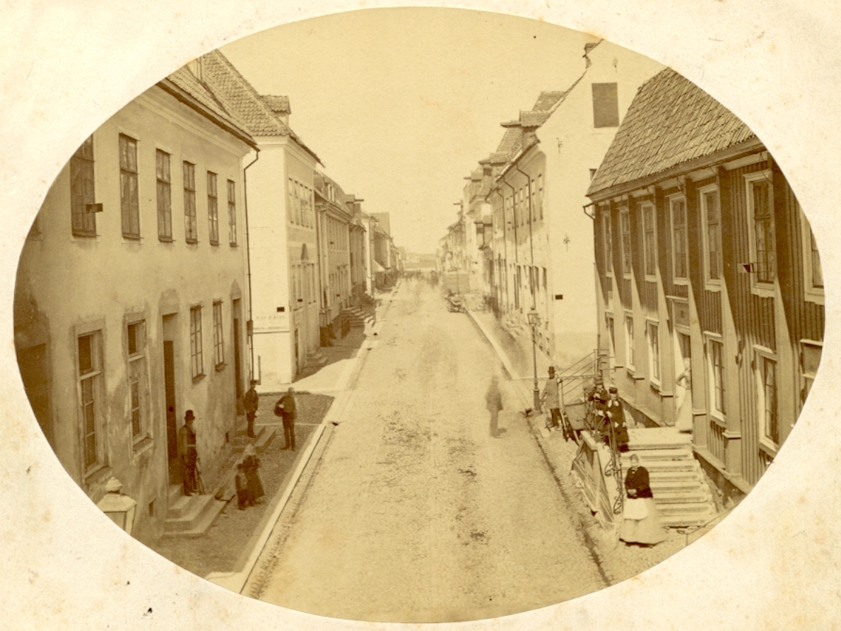 handlanden Olof Ruda, vilkeen enligt uppgift började sin rörelse år 1874. Bilden alltså sannoligt från 1870-talet. De gamla fritrapporna finns å bilden ännu i stor utsträckning kvar.